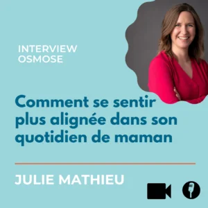 Aujourd’hui, on accueille Julie Mathieu qui est coach parental et qui nous a également aidés au début du lancement d’Osmose (box de développement personnel) pour nous faire des feed-back sur le concept. Julie est spécialisée dans l’accompagnement des mamans, et les aide à se sentir plus alignées dans ce qu’elles font au quotidien et à créer de belles relations avec leurs enfants.